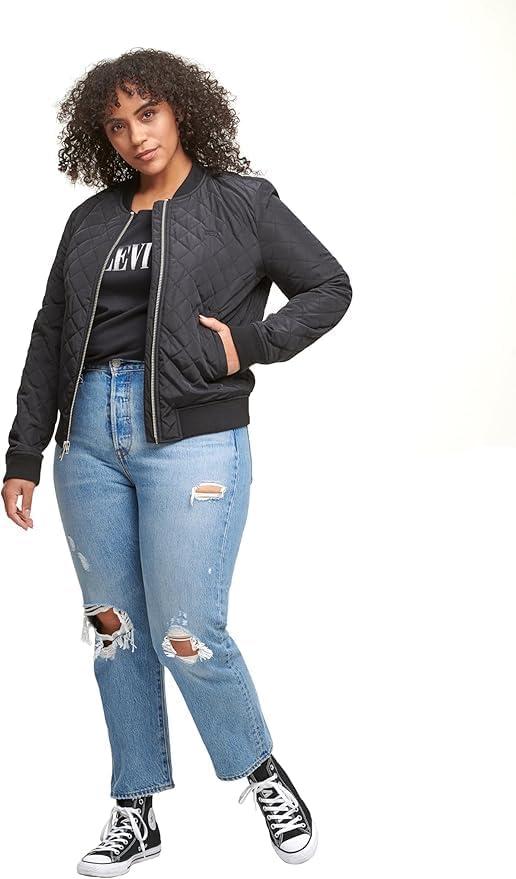Levi’s Women’s Diamond Quilted Bomber Jacket With Front Pockets – Regular & Plus Sizes(Shade Black)