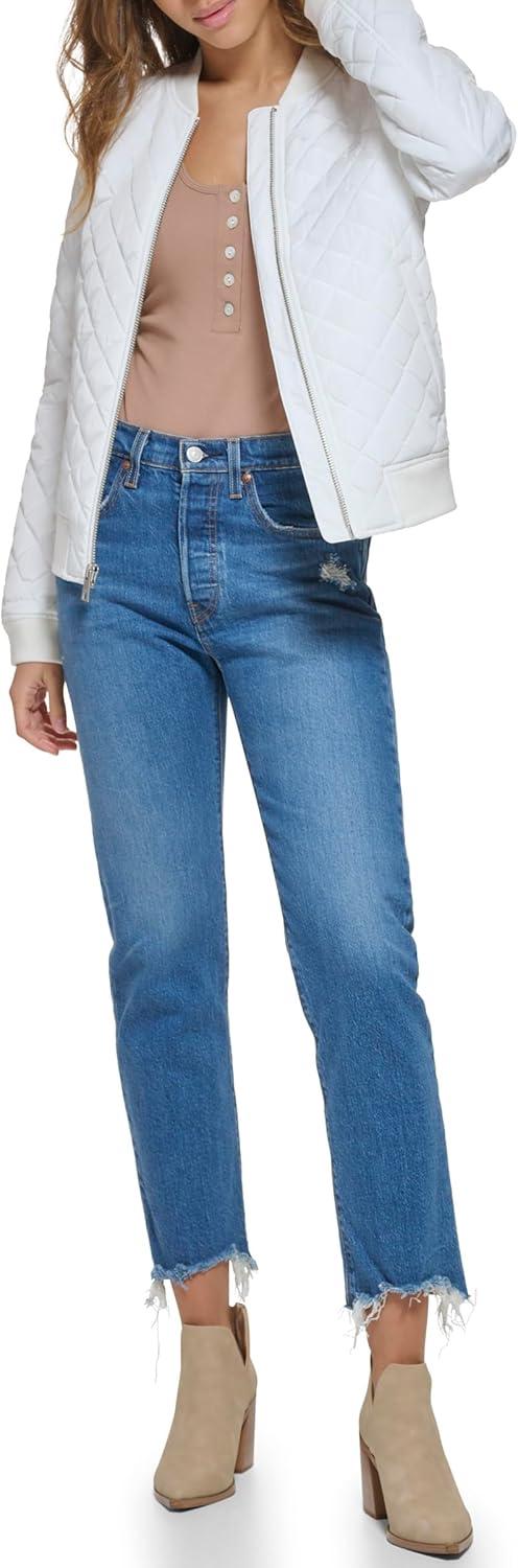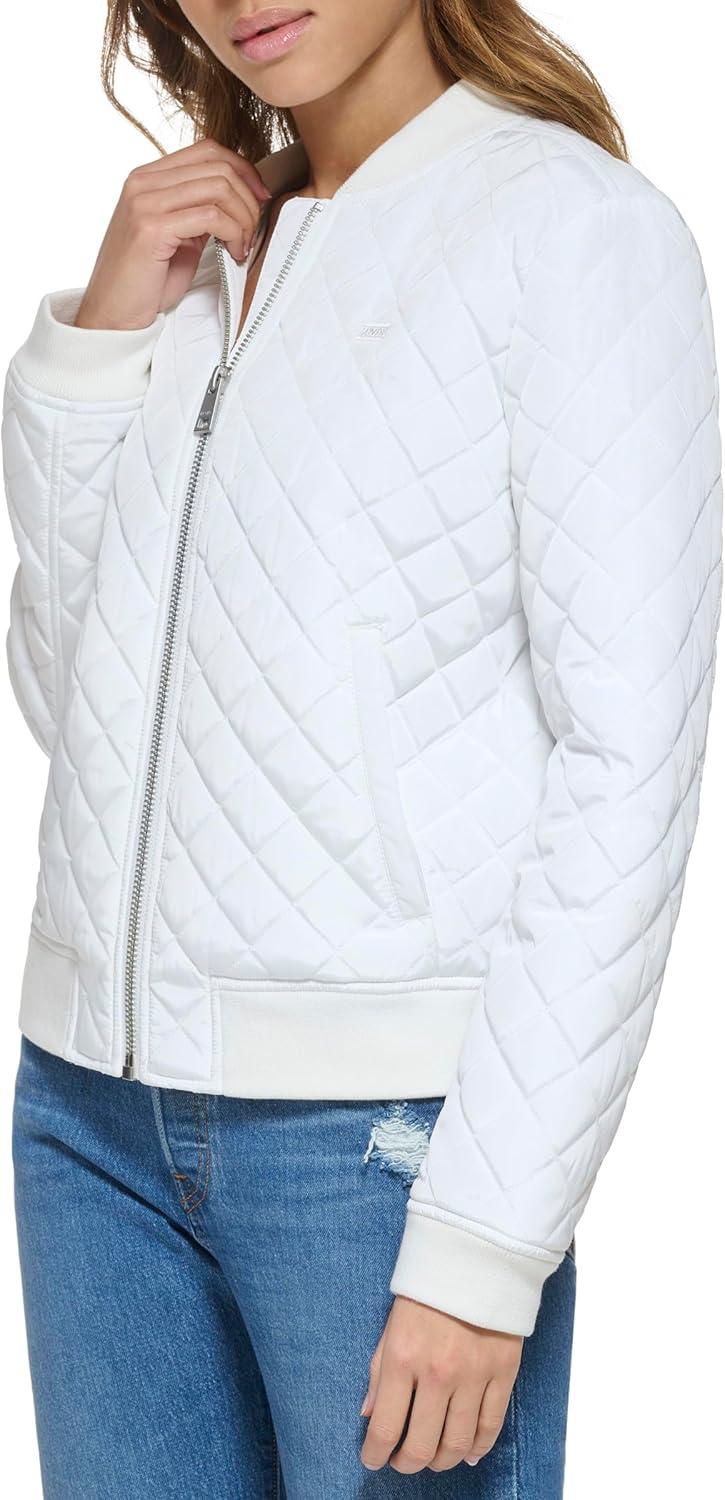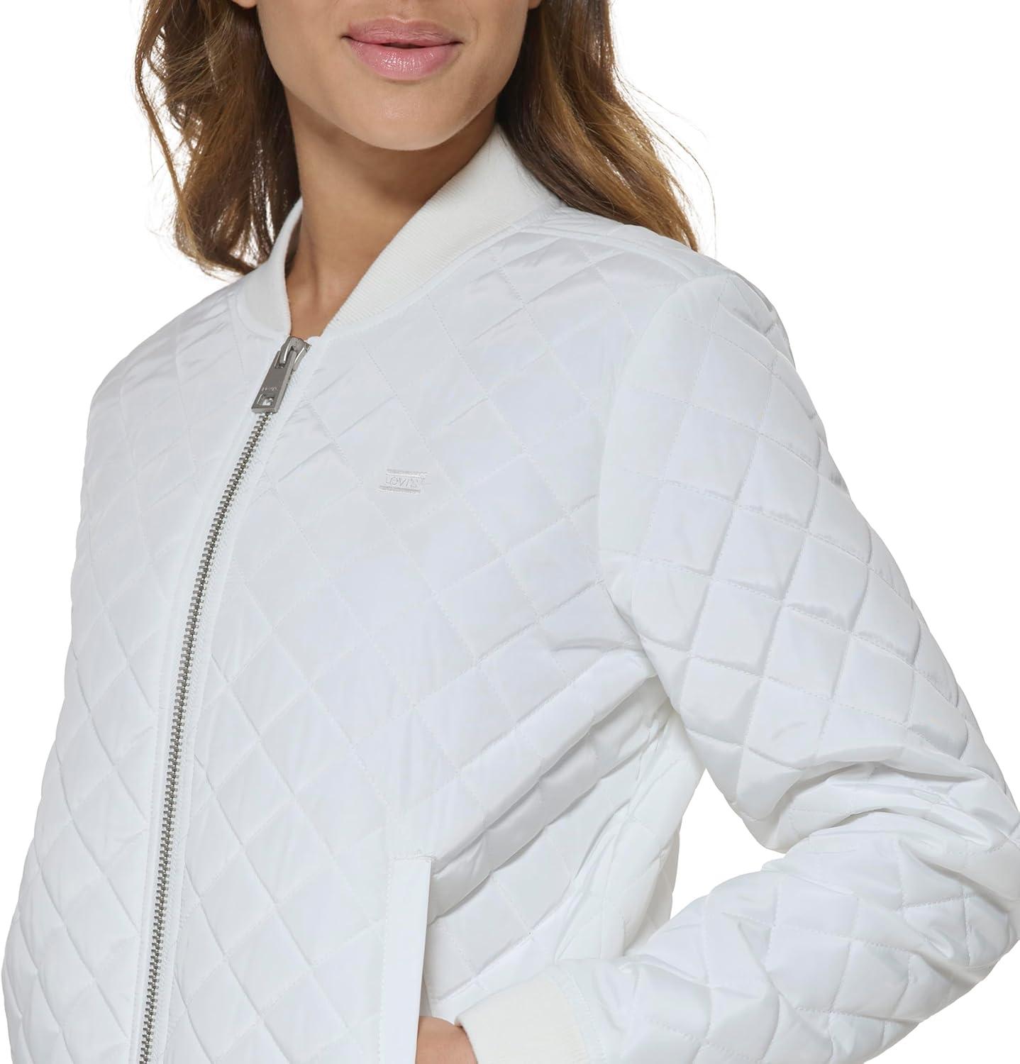 Levi’s Women’s Diamond Quilted Bomber Jacket With Front Pockets – Regular & Plus Sizes(White)