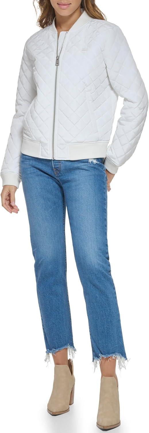 Levi's Women's Diamond Quilted Bomber Jacket With Front Pockets - Regular & Plus Sizes(White)