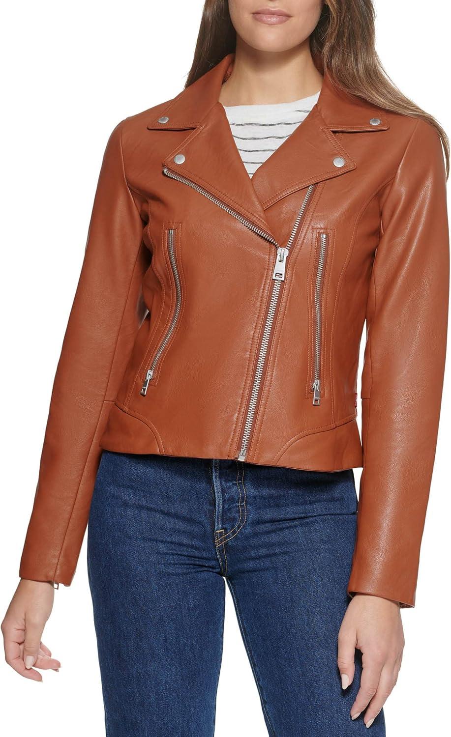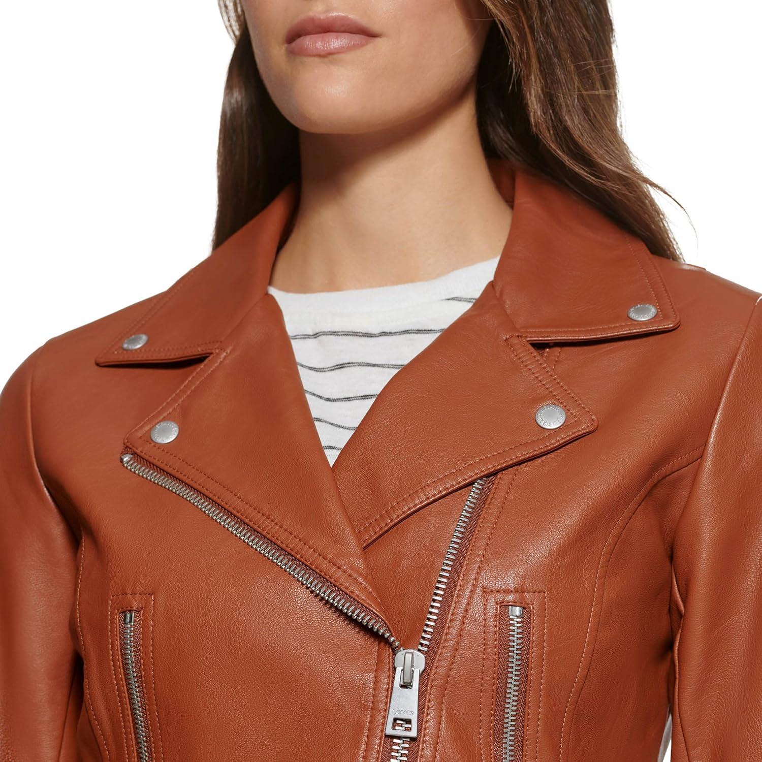 Levi’s womens Vegan Leather 538 Moto Jacket (Regular & Plus Size)(Camel)